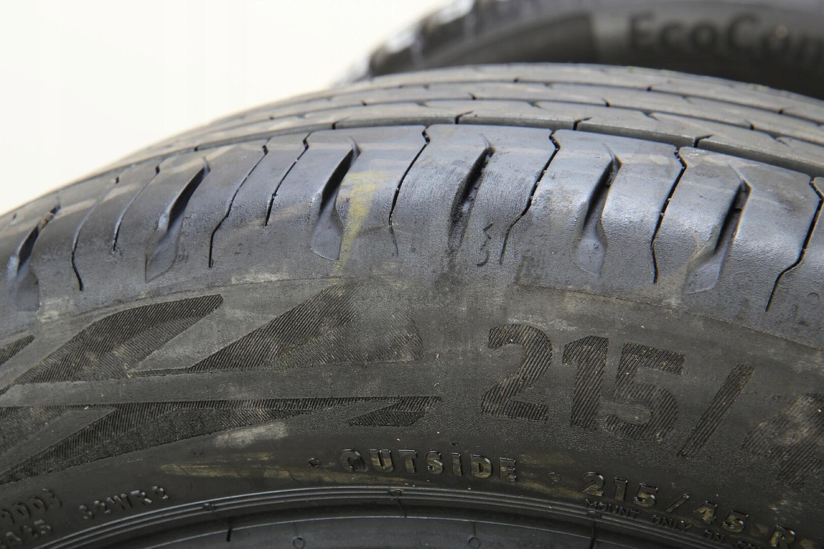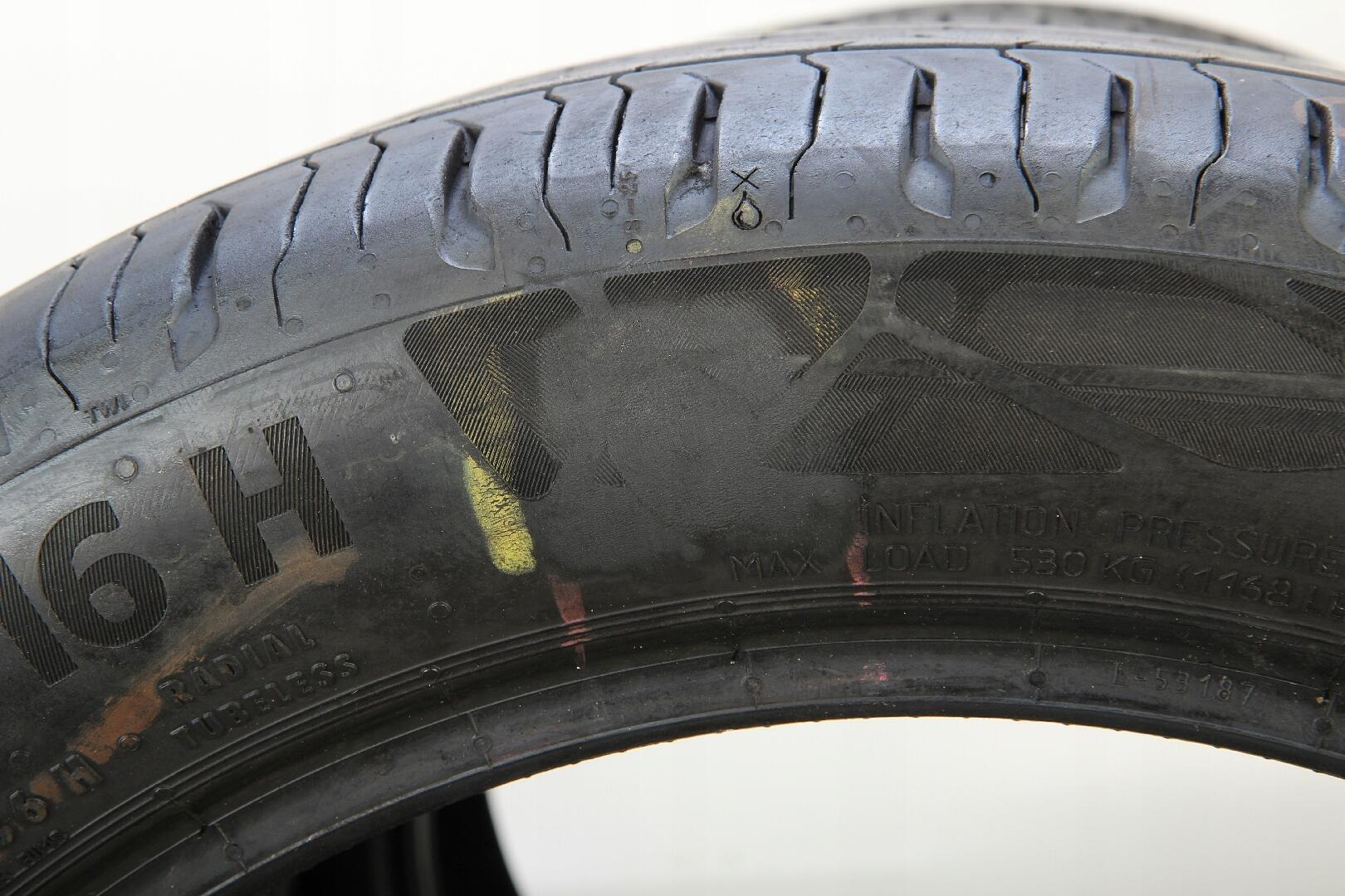 Trzy opony posiadają naprawy typu wtopienie polegające na powierzchownym uzupełnieniu ubytku na boku opony – naprawy kosmetyczne