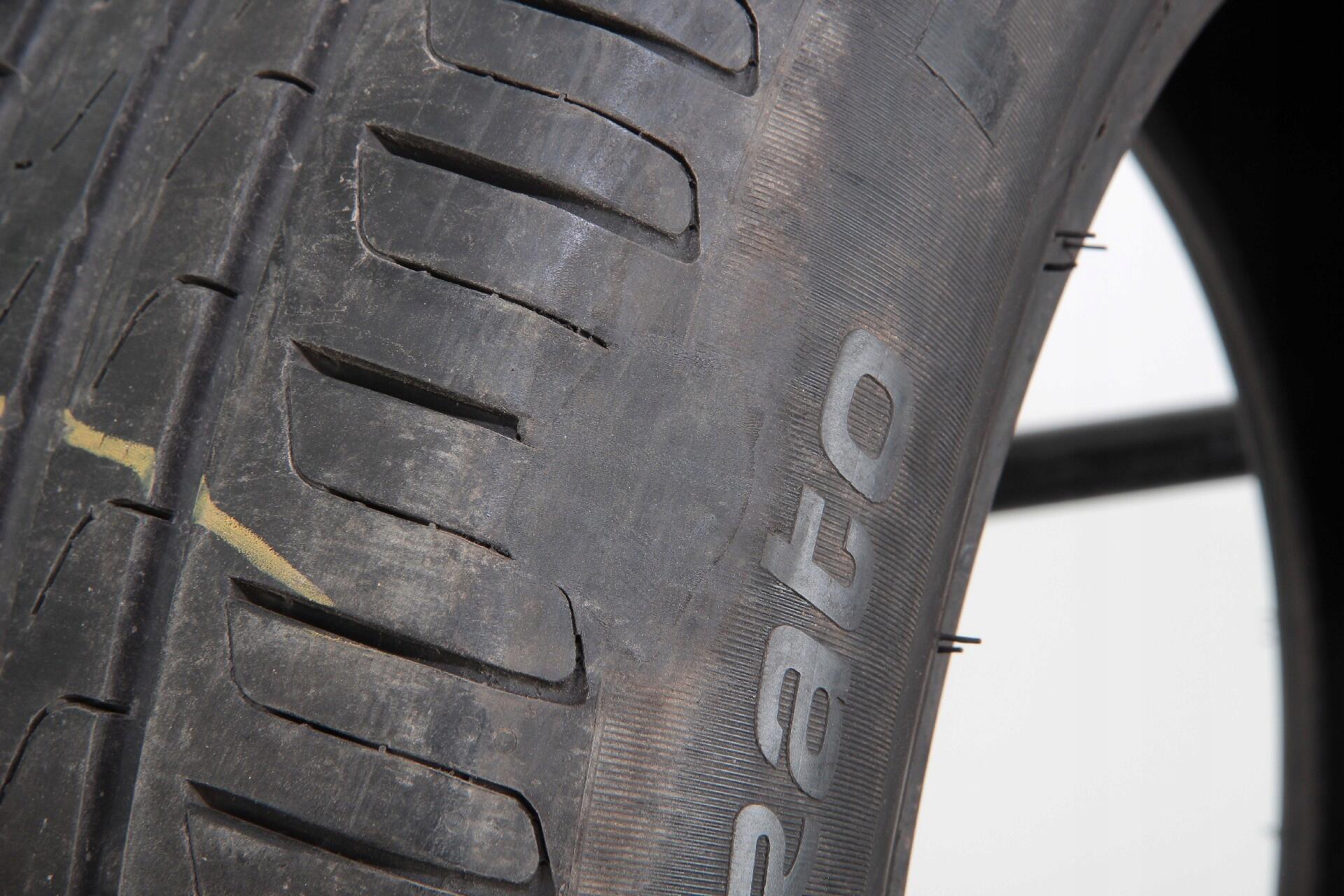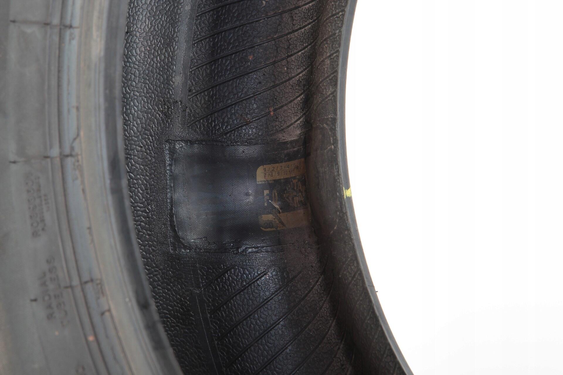 JEDNA Z OPON POSIADA PROFESJONALNIE WYKONANĄ NAPRAWĘ. NAPRAWA POKAZANA NA ZDJĘCIACH.