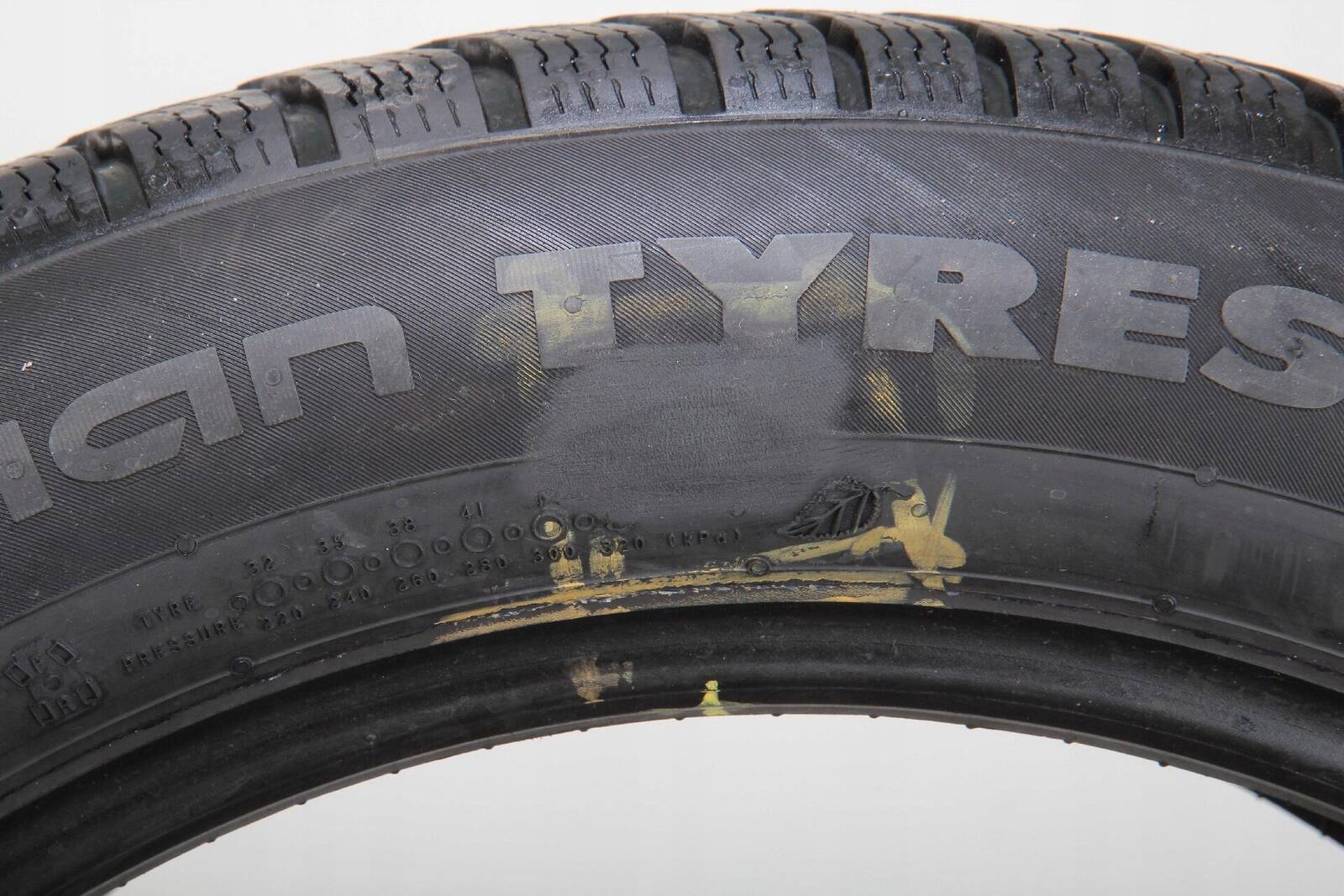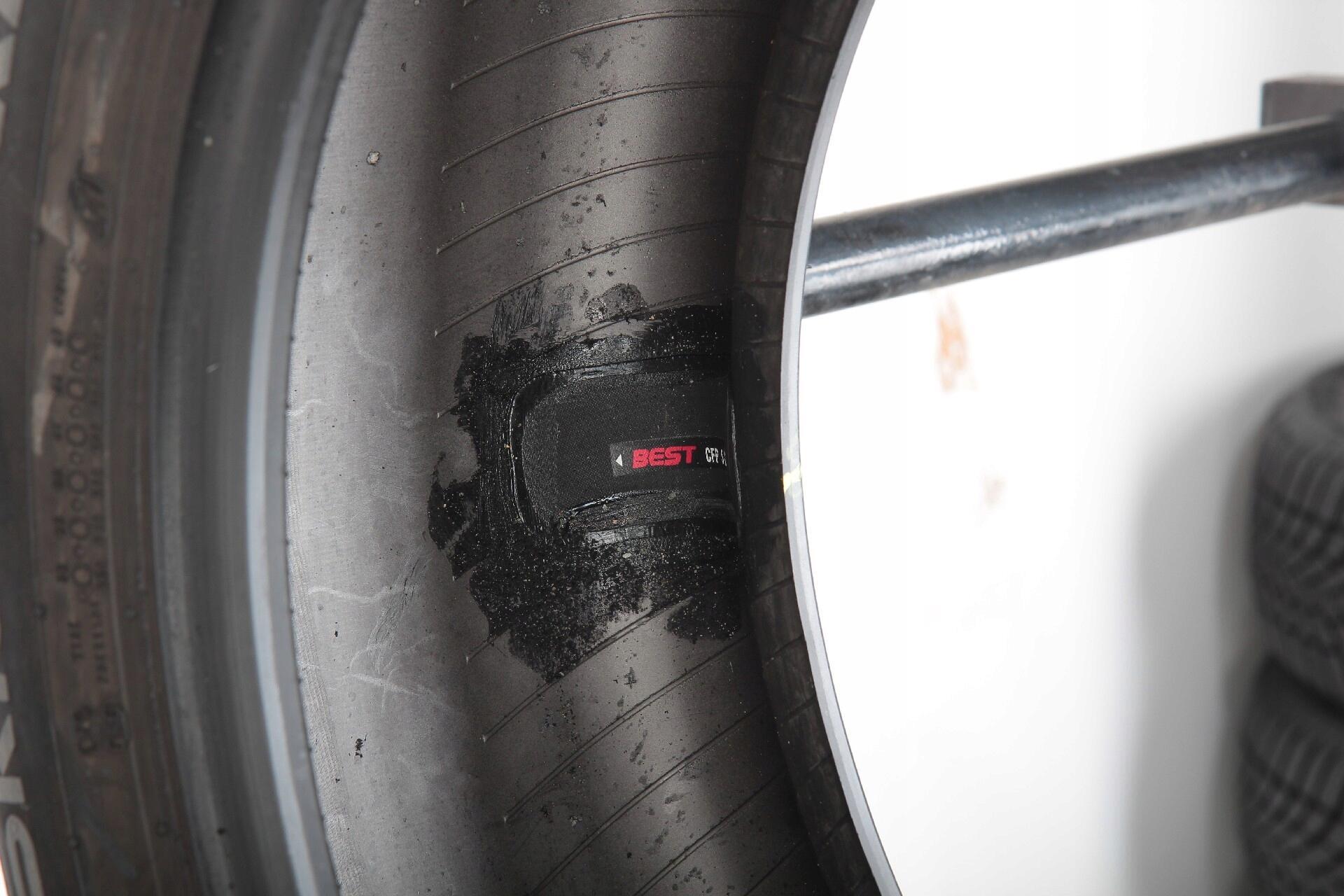 OPONA POSIADA PROFESJONALNIE WYKONANĄ NAPRAWĘ. NAPRAWA PRZEDSTAWIONA NA ZDJĘCIACH.