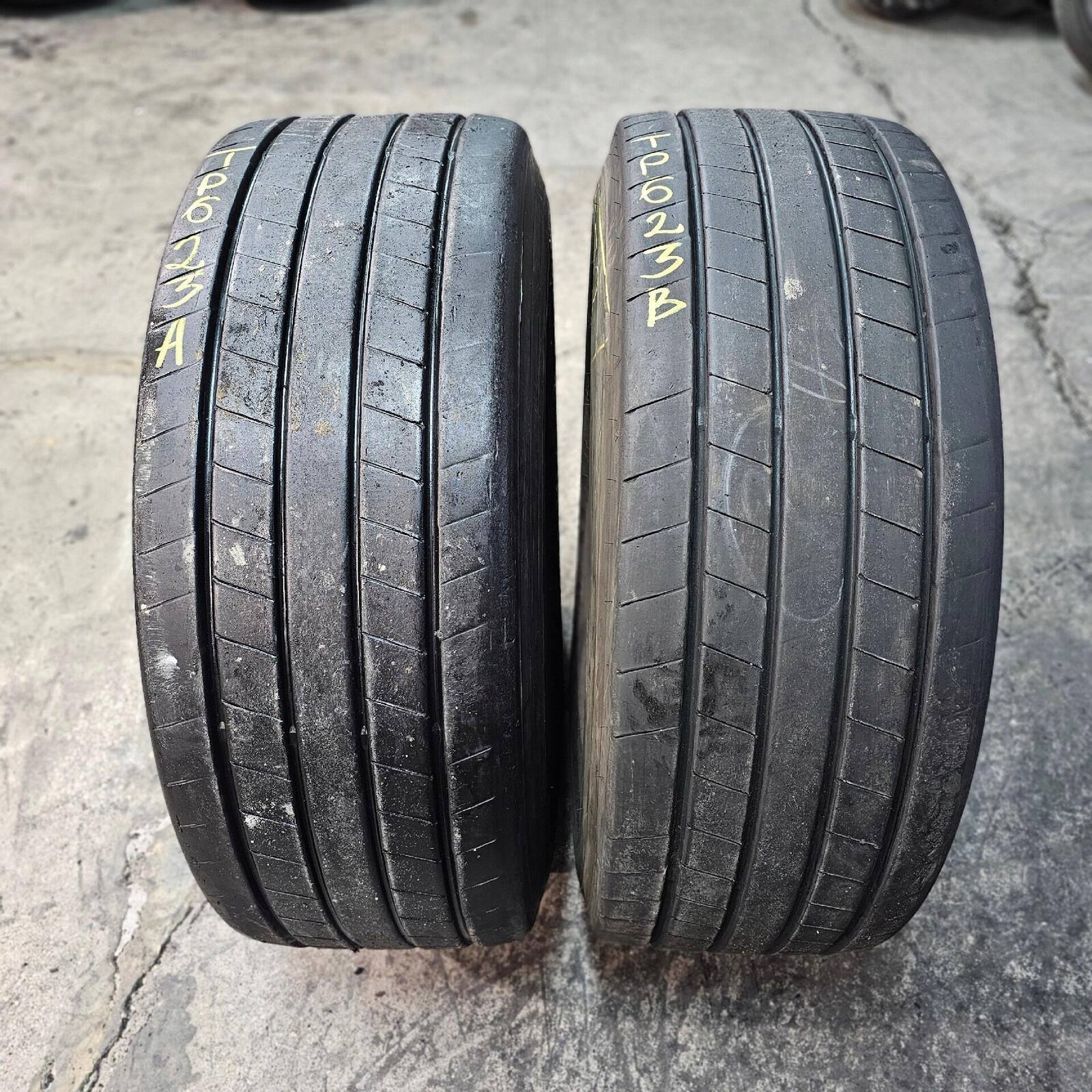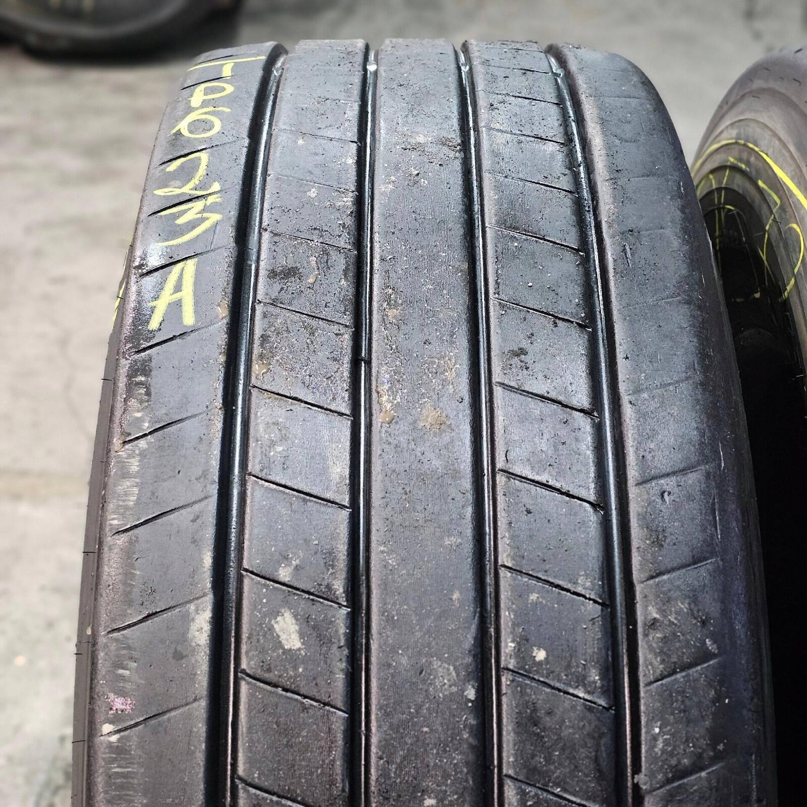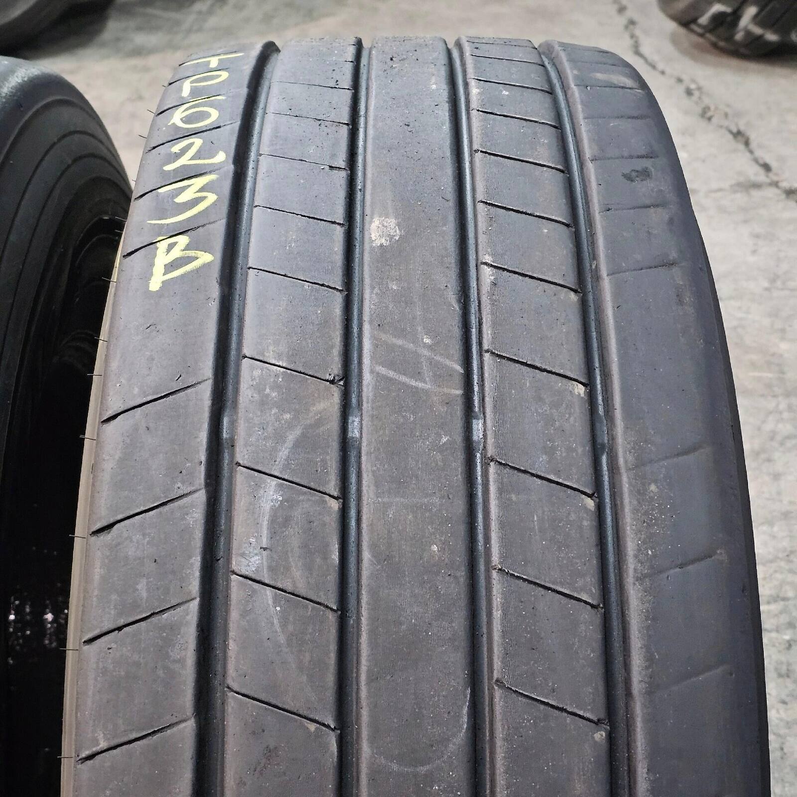 JEDNA Z OPON POSIADA PROFESJONALNIE WYKONANĄ KOSMETYCZNĄ NAPRAWĘ OD STRONY CZOŁA BIEŻNIKA.