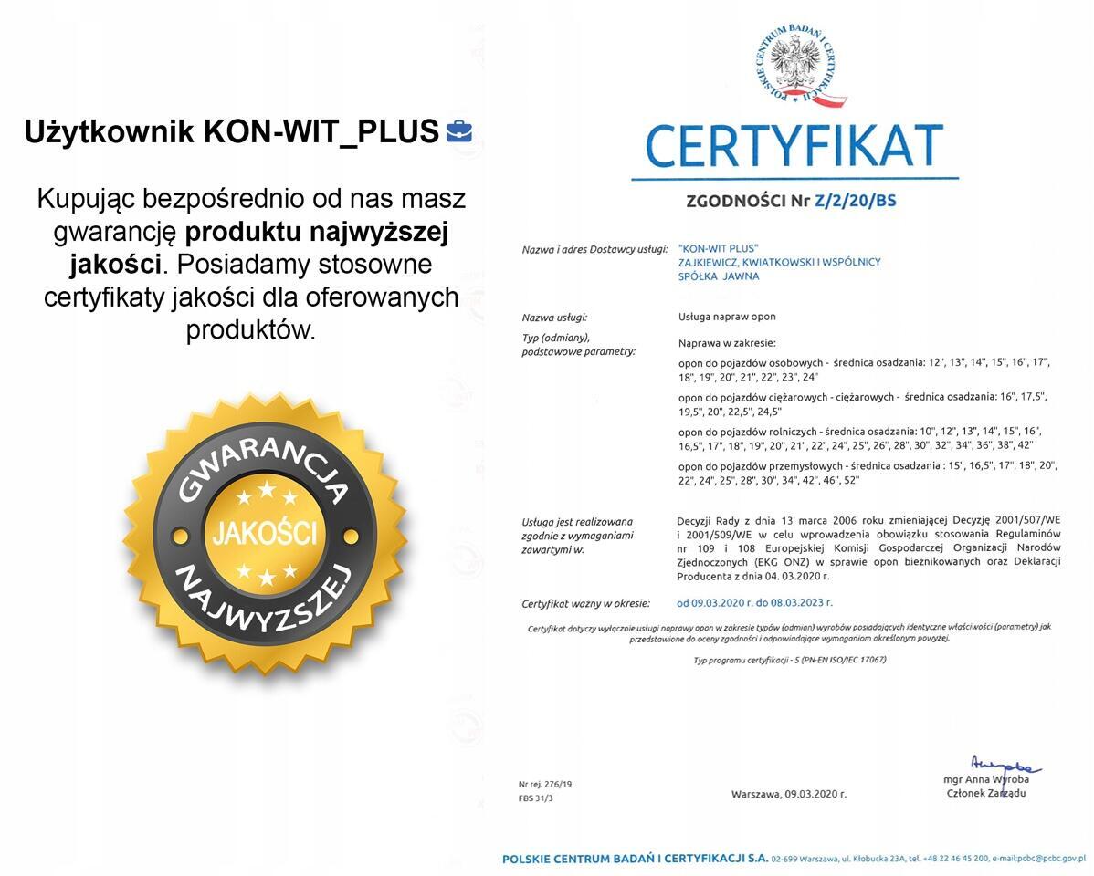 Działamy profesjonalnie i mamy w tym temacie ogromne doświadczenie oraz wiedzę. Potwierdzeniem tego są uzyskiwane przez nas od lat certyfikaty w zakresie napraw opon do pojazdów osobowych, ciężarowych, rolniczych i przemysłowych, nadawane nam przez Polskie Centrum Badań i Certyfikacji SA.